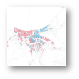 You don’t have to travel far to find a divided city. Check out these beautiful but sad maps, produced by Eric Fischer, showing the racial distribution of US cities (White population shown in red, Black population shown in blue):