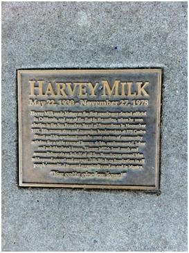 Right across the street there is this plaque in the sidewalk in front of Harvey Milk’s former camera store. It not only memorializes him, it also contains him, or at least his ashes.